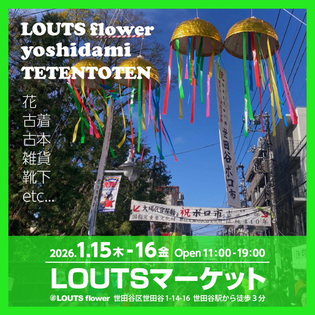 440年以上の歴史がある世田谷ボロ市の開催に合わせて、 会場にほど近いLOUTS flowerさんで開催されるLOUTSマーケットに出店します!