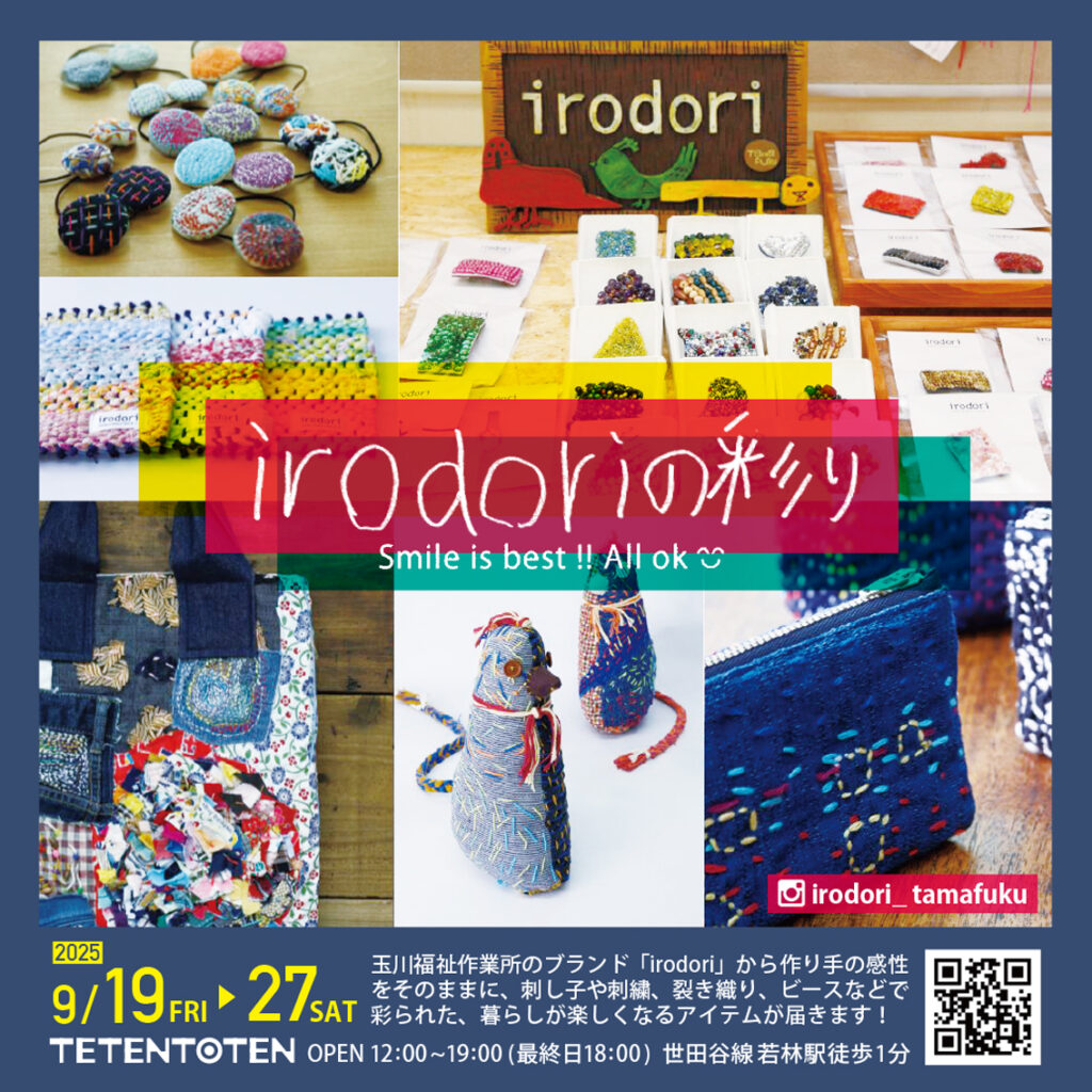 同じ世田谷区にある玉川福祉作業所さんのブランド「irodori」から、作り手の感性を活かし作られた可愛いアイテムが届きます!