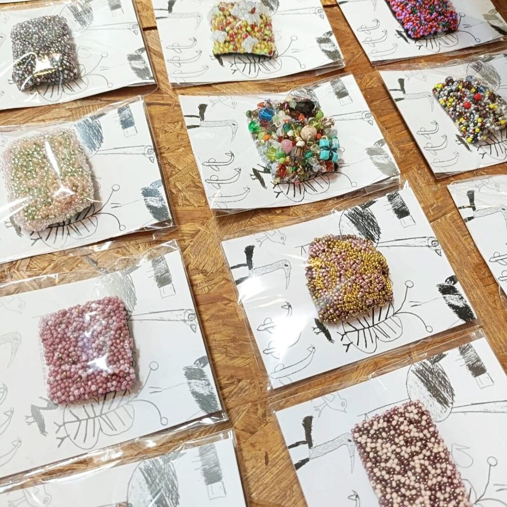 刺し子、裂き織り、ビーズなどで表現し彩られたブローチやバッグやマット、irodoriのネーミングにかけて描かれた色んな鳥たちのTシャツや手ぬぐいなどなど、カラフルで楽しいirodoriワールドが広がる9日間です。